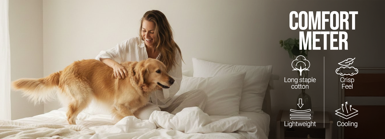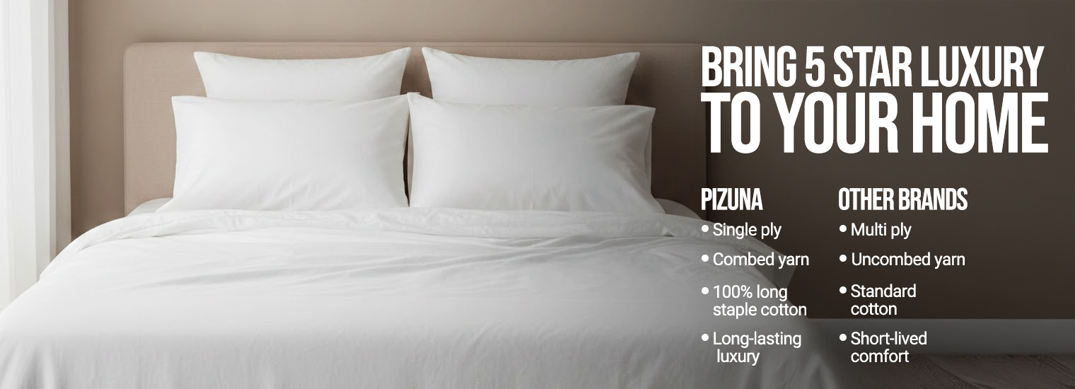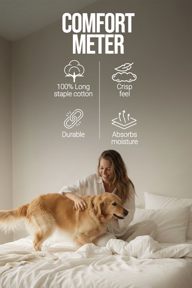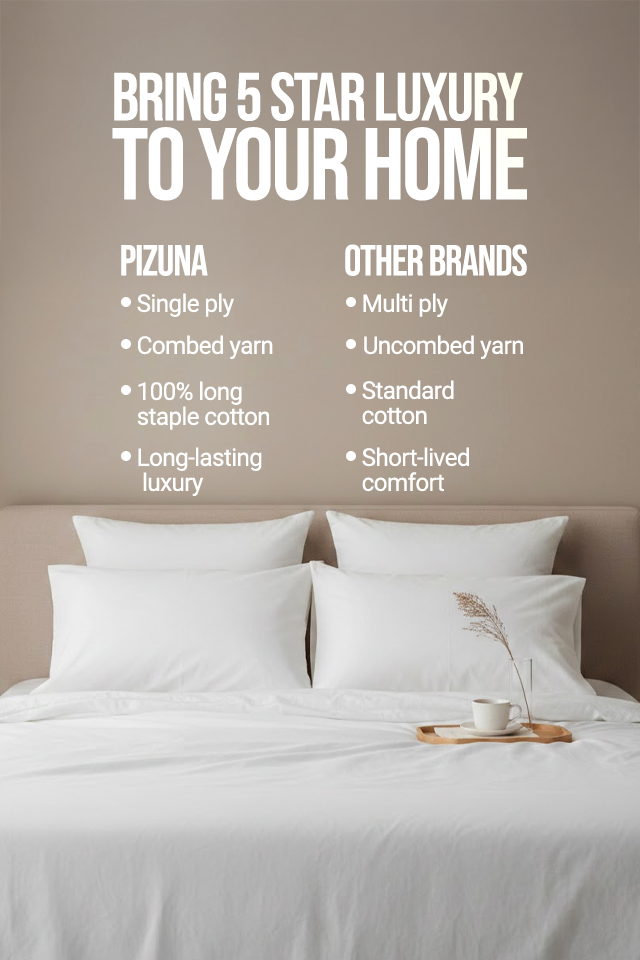 Features: • 100% Long-Staple Cotton – Smooth, soft and breathable • Fitted Sheet – Deep pockets with 360° elastic for a secure mattress fit • Flat Sheet – A stylish piped hem for an elegant look • Pillowcases – Pizuna-styled piped hem for a polished finish